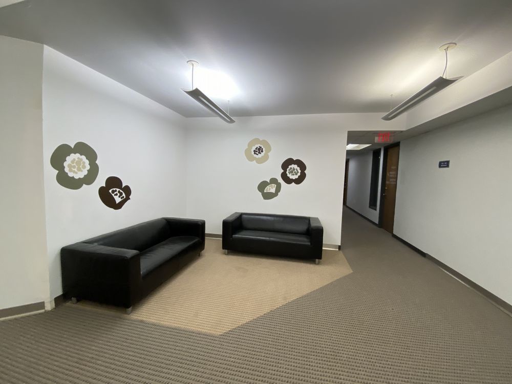 This office space has a large entry with 2 private offices on opposite sides of the entry. The space is located on the 1st floor, lower level.