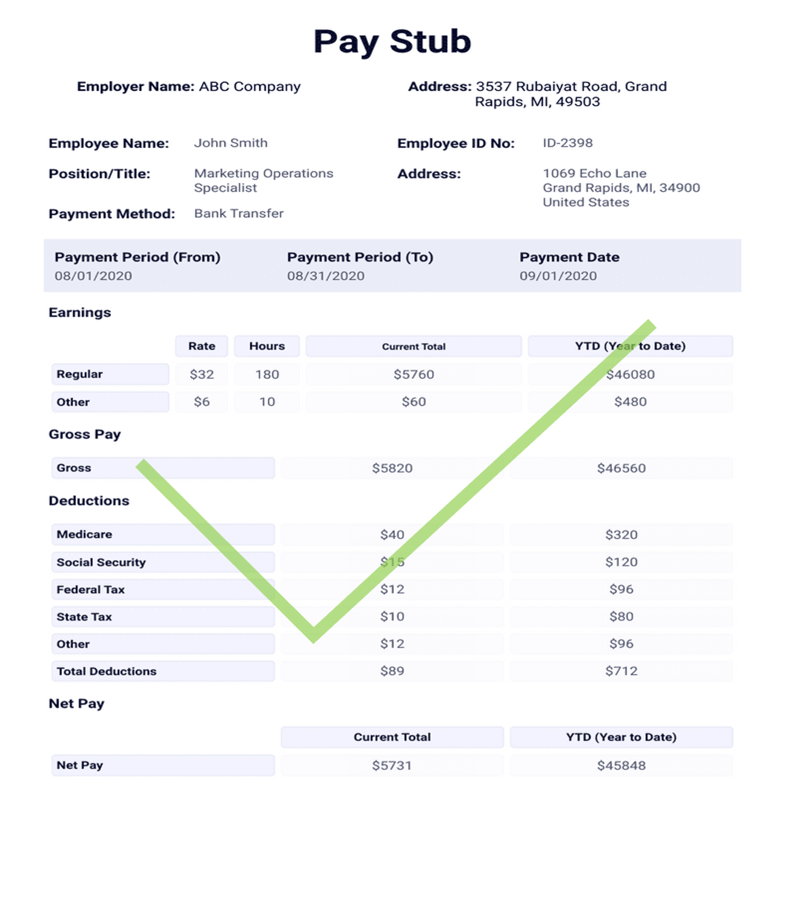 Example of paystub: